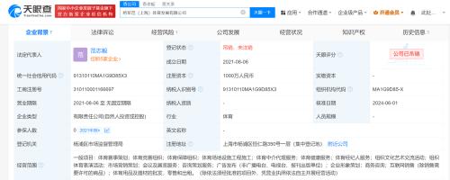 天眼查App显示,近日,将军范(上海)体育发展有限公司发生工商变更,企业状态由存续变更为“吊销,未注销”。