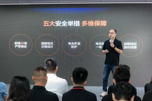雅迪科技集团广东智能产研基地总经理王辉也在会上进行致辞,他表示:雅迪积极响应政府号召,率先落地新国标要求,秉承‘以用户为中心’的理念,不断提升产品质量和性能。GB 42295标准的实施将为产品质量和安全水平提升,以及行业健康发展带来积极影响。雅迪始终积极响应国家政策,持续加大研发投入,不断提升产品质量和性能,为用户提供更加安全、可靠、舒适的骑行体验。