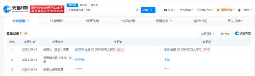 天眼查App显示,近日,上海叁壹导演工作室发生工商变更,原投资人张艺谋退出,新增王璇为投资人。该工作室成立于2012年11月,出资额50万人民币,经营范围含剧本创作,文化艺术活动交流与策划,影视剧、舞台剧策划,舞美设计、制作,市场营销策划等。