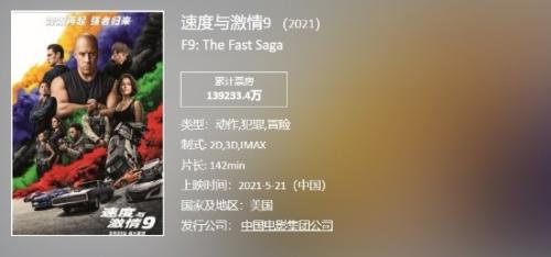 《速激9》于今年5月21日在中国内地上映,内地总票房接近14亿人民币。本片中的动作场面横跨全球,从伦敦到东京,从中美洲到爱丁堡,然后从位于阿塞拜疆的秘密地下碉堡,一直到格鲁吉亚共和国首都第比利斯车水马龙、熙来攘往的街头。这一路上,老朋友将起死回生,昔日的敌人将再度回归,历史将被重新改写,而且家庭真正的意义也将受到前所未有的考验。