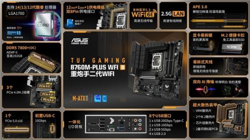 同步发售的还有性价比更高的华硕B760重炮手二代主板,有线连接网速更稳。