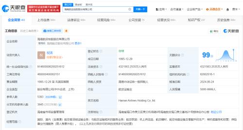 天眼查App显示,近日,海航控股(600221)发生工商变更,丁拥政卸任法定代表人、董事长,由祝涛接任。该公司成立于1995年12月,注册资本约432.2亿人民币,经营范围含国际、国内(含港澳)航空客货邮运输业务、与航空运输相关的服务业务、航空旅游、候机楼服务和经营、保险兼业代理服务等,由海南瀚巍投资有限公司、海南方大航空发展有限公司、大新华航空有限公司等共同持股。