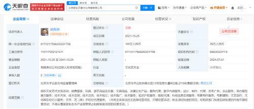 天眼查App显示,近日,北京歌如天籁文化传媒有限公司经营状态由存续变更为注销。该公司成立于2021年10月,法定代表人、执行董事、经理为胡海泉,注册资本100万人民币,由北京星籁文化传媒中心(有限合伙)、海南泉心泉语企业管理合伙企业(有限合伙)、北京致均网络科技中心(有限合伙)共同持股,其中前2位股东实控人也均为胡海泉。