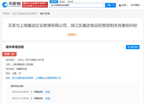 天眼查App显示,近日,张某某新增一条被执行人信息,执行标的20万元,执行法院为上海市嘉定区人民法院,涉及王一博与上海魔迹企业管理有限公司以及张某某经营的鸠江区魔迹食品经营部相关肖像权纠纷案件。去年,王一博起诉上述两企业侵权。上述经营部上诉后,今年1月、2月该案二审。