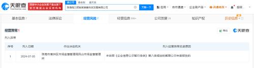 天眼查App显示,近日,珠海格力预制菜装备科技发展有限公司因未依照规定公示年度报告,被珠海市香洲区市场监督管理局凤山市场监督管理所列入经营异常名录。