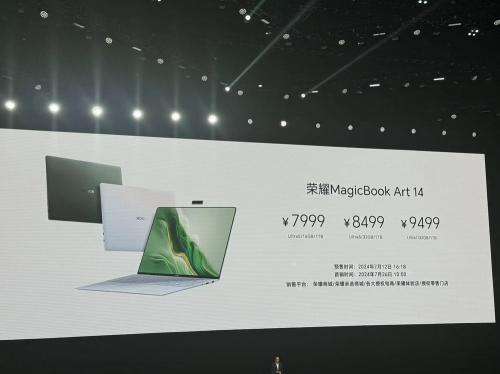 荣耀MagiBook Art 14笔记本电脑售价公布,Ultra5/16GB/1TB 7999元;Ultra5/32GB/1TB 8499元;Ultra7/32GB/1TB 9499元。今日预售,26日发售。