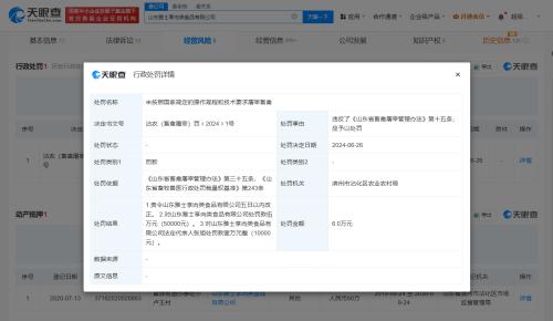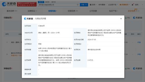天眼查经营风险信息显示,近日,山东雅士享肉类食品有限公司因未按照国家规定的操作规程和技术要求屠宰畜禽,被滨州市沾化区农业农村局罚款5万元,同时该公司法定代表人张旭被罚款1万元。