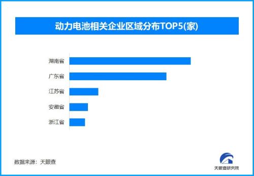 天眼查专业版数据显示,截至目前,全国现存与动力电池相关的企业约为7400余家。从地域分布来看,湖南、广东、以及江苏,三地所拥有的动力电池相关企业位居前列,分别有2200余家、1700余家以及540余家。