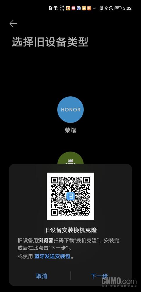 旧机安装好“换机克隆APP”之后打开它,点击“这是旧设备”,同时在新机荣耀Magic3 Pro上点击“下一步”,然后用华为Mate 40 Pro(旧机)去扫描荣耀Magic3 Pro(新机)上显示的二维码,待两台设备连接成功后,即可在华为Mate 40 Pro(旧机)上去选择要迁移到荣耀Magic3 Pro上的数据了。整个操作流程仅需要5步,5步之内,无缝切换至荣耀Magic3 Pro,没有操作门槛,只需要按步骤一步一步进行下去,非常方便。