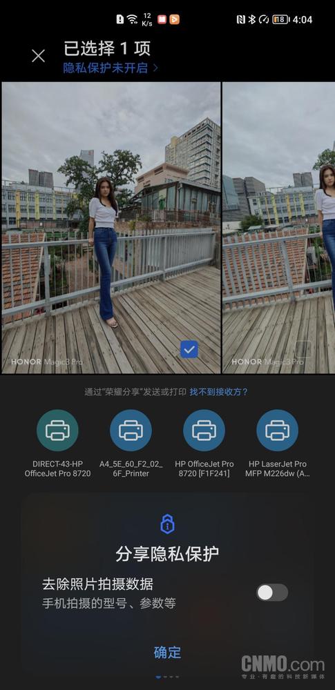 “识图寻人”也是互联网上“人肉”的最常见操作,在这个大家都已经习惯通过图片分享生活的时代,还有很多人不知道,自己照片的信息也会被有心之人利用。鉴于此,荣耀Magic3系列中内置了“照片分享脱敏”功能。当我们想要分享照片的时候,在分享图片前点击“分享隐私保护“即可选择“去除照片拍摄数据”或“去除照片位置信息”。完成操作后,当我们继续分享图片时,照片拍摄的地址,时间和设备等信息将不会被记载,让大家能更安全地与他人分享精彩瞬间。
