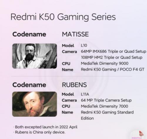 除天玑9000外,Redmi K50系列还将推出一款搭载天玑7000芯片的产品,这部手机的内部型号为L11A,代号为rubens。外媒表示两款手机的代号都是画家,因此这部手机有可能是同属于Redmi K50游戏增强版系列的产品。