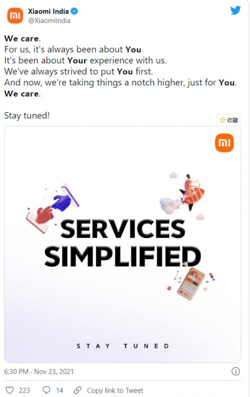 近日,小米印度官方发布了一条推文称:“我们重视你的体验,即将让我们的服务更简便化。”这条推文也引起了不少人的好奇,纷纷猜测小米是不是也要上线自主维修计划。不过,也有人认为,小米可能会在印度地区升级Mi Care(2年2次意外碎屏免费修,1年内保值换新等),也可能是对小米零售店的售后职能进行整合。