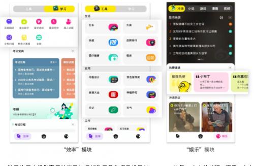 据报道,Wonder App是一个围绕年轻群体的泛信息服务平台。它的功能覆盖非常全面,除了最基础的搜索外,还包括生活服务、考研考公、娱乐等功能,主要包含在“效率”和“娱乐”两大功能模块内。“效率”模块包括留学选校、教辅解析等学习功能,打车、外卖、快递、租房等生活服务也一应俱全。“娱乐”模块则集齐了当下的热搜热梗,用户可以在这里享受小说、游戏、漫画和视频等娱乐资源。