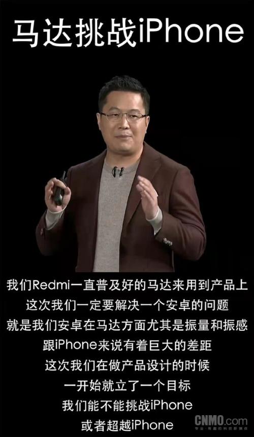 在谈到Redmi K50电竞版的马达配置时,卢伟冰称:我们一直普及好的马达来用到产品上。这次我们一定要解决一个安卓的问题,就是安卓在马达方面尤其是振量和振感跟iPhone有着巨大的差距。这次我们在做产品设计的时候,一开始就立了一个目标:我们能不能挑战iPhone,或者超越iPhone。
