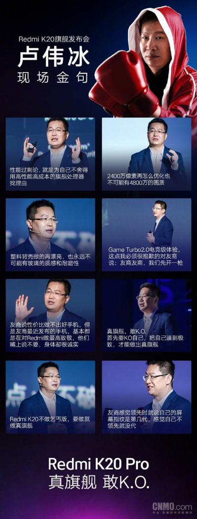 据不完全统计,卢伟冰在K30 Pro发布会上说过的金句就包括: