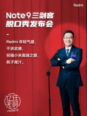 2020年11月26日,Redmi举办了Note9系列“三剑客”脱口秀发布会,在这场发布会上,卢伟冰更是说了不少金句,包括“既想一秒售空,又怕一秒售空”“你说我人狠货不多,其实是我没想到,会有超过一亿人喜欢我们”“Redmi年轻气盛,不讲武德。祝福小米高端之路,耗子尾汁”等等。