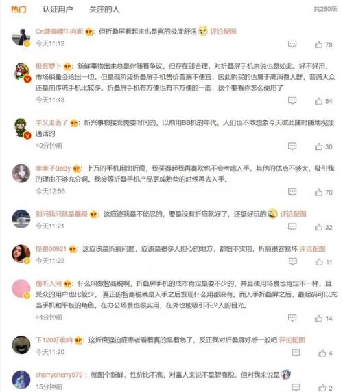也有这样的观点:“什么叫做智商税啊,折叠屏手机的成本肯定是要不少的,并且使用场景也肯定不一样,且受众的用户也比较少。真正的智商税就是入手之后发现什么用都没有。而入手折叠屏之后,最起码可以充当手机和平板的角色,在办公场景也很实用,在外也能吸引不少人的目光。”