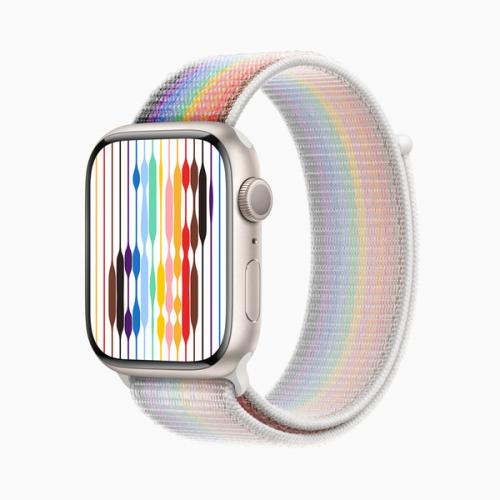 今年,苹果依然为新款彩虹表带准备了与之搭配的新表盘。新款表盘灵感来自多种骄傲旗帜,表盘以色彩鲜艳的线条呼应运动表带的彩色织物,共同构成表盘的整体构图。转动数码表冠、轻点表盘或抬起手腕时,彩色线条也会随之移动。
