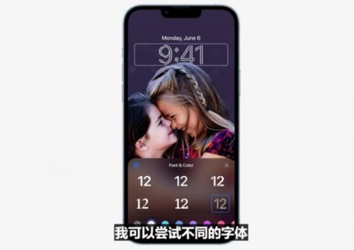 iOS 16支持个性锁屏,长按可以自定义时钟颜色、调整颜色的色度、调整样式、主题动画、不同字体等,还可以添加小组件了,比如日历小组件。同时,屏幕上的时间、壁纸等所有组件就像PS里的图层或元素,用户可以像P图一样把组件移动和缩放到自己喜欢的位置,而新的锁屏通知挪到了屏幕下方,防止遮挡。
