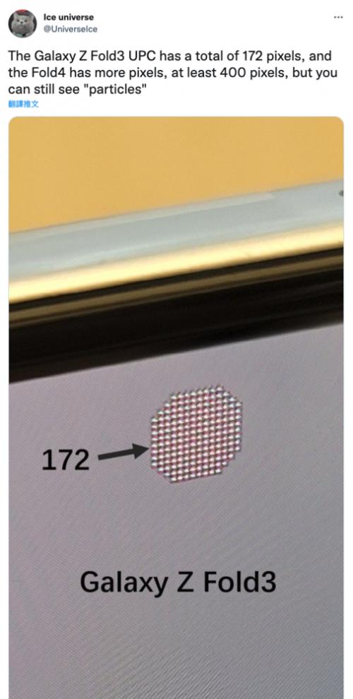在去年的Z Fold3中,三星首次为折叠屏引入屏下摄像头技术,然而由于镜头处的像素密度较低,显示彩色画面时依然会出现“纱窗”一般的观感。而在最新一代的Z Fold4中,屏下镜头区域的像素密度有望达到400PPI,它不但能显著提升屏幕观感,让镜头彻底隐藏在屏幕下方,同时也不会影响日常拍照的体验。