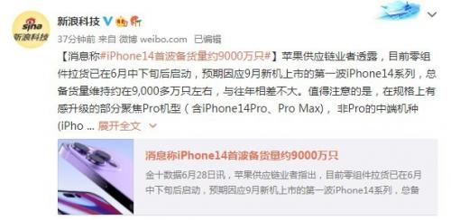 6月28日消息,有苹果供应链人士表示,目前iPhone14系列零组件拉货已在6月中下旬后启动,预计9月上市的iPhone14系列的总备货量约为9000多万部左右,与往年相差不大。消息还称,今年iPhone14 Pro/ProMax在规格上有明显提升,而iPhone14/14 Max除了RAM小幅升级外,几乎没有太大变化。