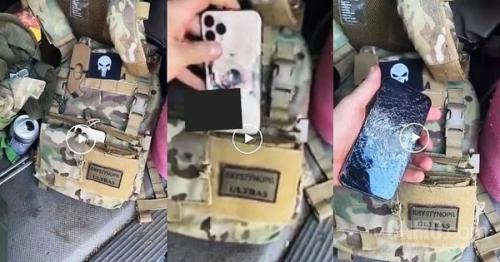在Reddit发布的视频中,一名据称是乌克兰的士兵从背包中取出他的iPhone 11 Pro。视频清楚地显示了一台损坏的iPhone,子弹仍然卡在里面。事实证明,iPhone手机足够坚固,才能够挡住子弹,从而不伤害士兵。如果没有这款手机,子弹可能会致命。