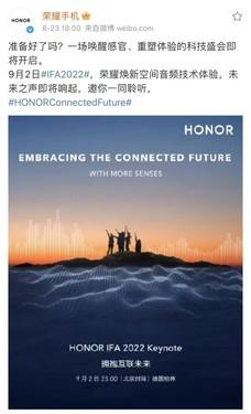海报中“焕新空间音频技术体验”的描述预示,荣耀或将在2022 IFA上带来“空间音频技术”的创新体验,为平板电脑、笔记本电脑、TWS耳机、手机等全场景互联生态产品赋能。