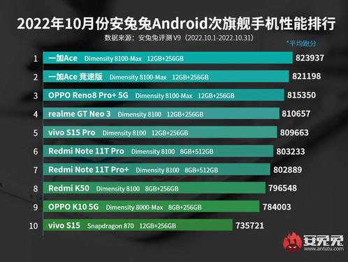 近日,安兔兔放出了10月安卓手机性能榜,让我们来看看这个月,各家手机的性能排名情况吧。