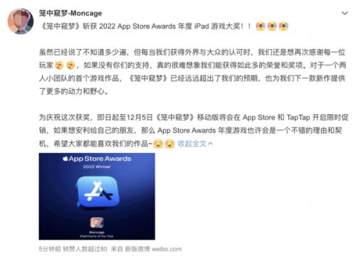 值得一提的是,为庆祝此次获奖,《笼中窥梦》团队宣布即日起至12月5日游戏将在App Store开启限时促销,如果你也想体验一下这款解谜游戏,不妨去App Store下载体验。