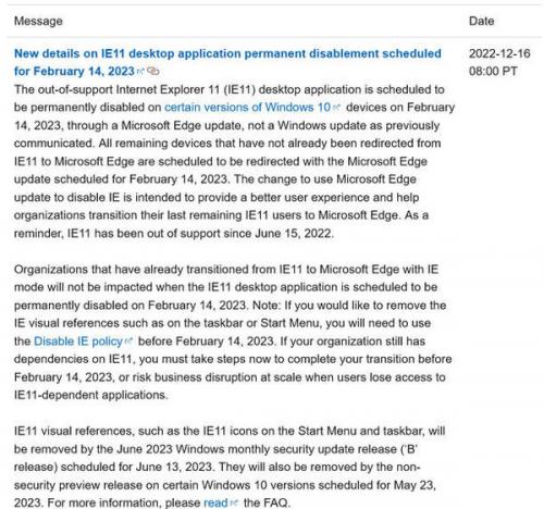 来自微软的消息,2023年2月14日微软将正式下放全新的补丁,来将用户电脑上IE更换为新浏览器Edge,这一更新将会通过Edge来执行,而非原定的Windows Update,也就是说这一进程被提速了。