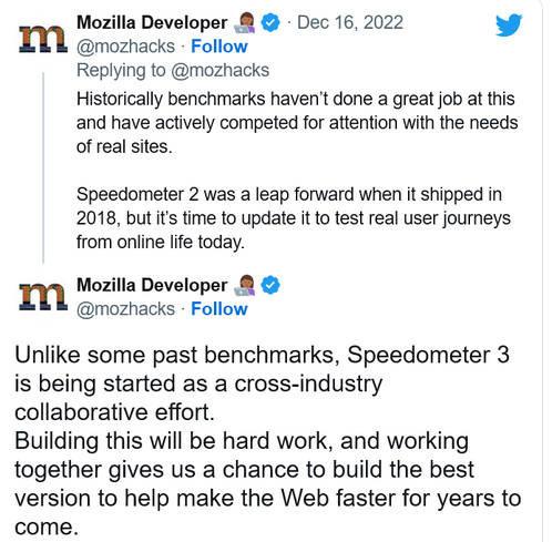Mozilla表示,由几家网络公司建立的基准将有助于提供"对重要事项的共同理解",通过协调网络开发者、标准机构、建立基于这些标准解释代码的引擎的团体以及围绕这些引擎建立浏览器的公司时,这一点非常重要。苹果公司则表示:"合作将帮助我们进一步改善基准,并为我们的用户提高浏览器性能"。