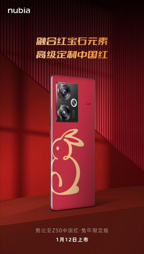 具体来看,努比亚Z50中国红・兔年限定版以努比亚Z50为基础,将机身外壳改用中国红配色,融合红宝石设计元素,为消费者呈现更有质感更高级的红!与此同时,努比亚Z50中国红・兔年限定版还在机身下半部分印上金色轮廓的兔子,以此来凸显兔年限定的身份。官方表示,努比亚Z50中国红・兔年限定版将在1月12日正式开售。