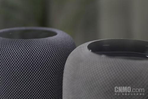 第二代HomePod依然采用经典造型,然而当我们将两代HomePod放在一起时,还是可以看到二者的区别。它的表面还是织物纹理,但原来凸起的触摸区域,已经变成类似HomePod mini的凹陷触摸区,而且电源线也采用了分体设计,底部也由此前的凹陷变更为平面。