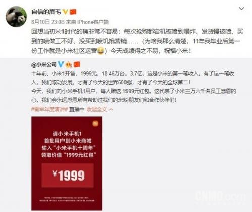 “优秀的公司赚取利润,伟大的公司赢得人心”。在昨晚的发布会上,雷军再次向大家证明了这一点,相信看了雷军2021年度演讲的朋友都被感动到了,特别是小米1首批用户。为了感谢小米首批用户的支持,雷军宣布,小米将赠送小米1首批用户1999元红包,约3.7亿元。此消息一出,炸出了不少友商高管,纷纷分享了自己与小米的缘分。原OPPO助理副总裁沈义人就是其中之一。
