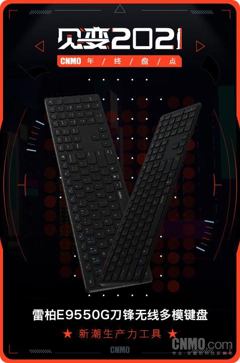 键盘,是很多人必不可少的游戏、办公设备,一副好的键盘可以让游戏体验进一步提升、办公效率事半功倍。目前市面上有很多优秀的外设厂商,而雷柏便是其中之一。在见变2021 CNMO年终盘点活动中,雷柏E9550G刀锋无线多模键盘获CNMO“新潮生产力工具”奖项。