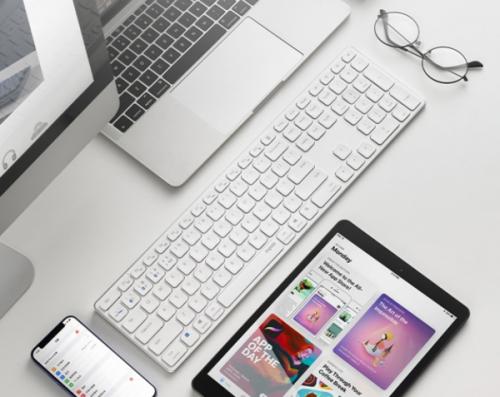 该键盘配备磨砂铝合金边框和背板,最薄处仅有5mm,搭配时尚的外观,外出办公非常引人注目;采用剪刀脚结构设计,按键回弹迅速、压力均衡,杜绝“卡壳”现象,舒适度与使用寿命较普通键盘大大提升;支持蓝牙5.0/3.0/无线2.4G连接,可同时支持4台设备切换,传输稳定可靠,多台设备“一键”搞定。