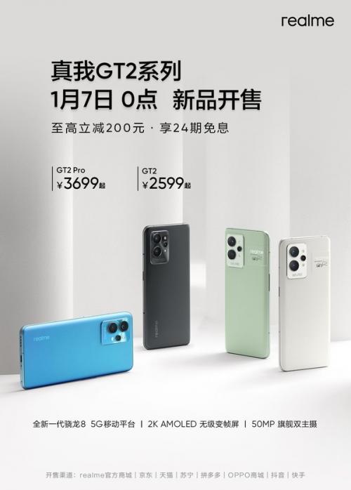 1月4日晚,realme真我发布了2022年的第一款旗舰级手机――真我GT2系列。而在今天0点,这款极具性价比的新机正式开售。其中真我GT2售价2599元起,真我GT2 Pro售价3699元起,有需求的小伙伴一定不要错过。