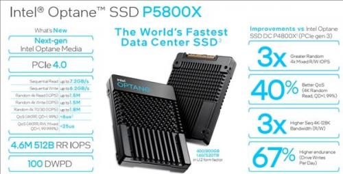 回顾下P5800X的性能,傲腾SSD P5800X采用2.5英寸U.2形态,容量可选400GB、800GB、1.6TB、3.2TB,支持PCIe 4.0,持续读写性能最高7.2GB/s、6.2GB/s(是上代的3倍),4K随机读写性能最高都是150万IOPS,4K 70/30混合随机性能最高180万IOPS(是上代的3倍),512bit随机读取性能高达460万IOPS,4K随机读取延迟低于6微秒、随机读写延迟低于25微秒(比上代提升40%)。