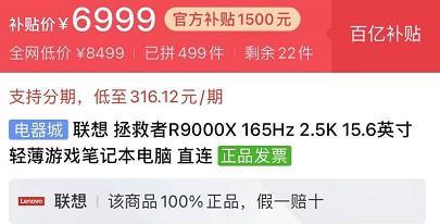 而在第三方店铺和平台,R9000X的售价从发售到十一月份都普遍保持在9000-10000之间,现在则是只要6999就能买到现货的全新品,降价幅度接近30%。除了R9000X之外,热销的R9000P同样也降价许多,在拼多多的百亿补贴平台上仅需7299元即可入手,而在2021年的12月中旬,R9000P的京东售价还一度高达8999元,降价幅度接近20%。