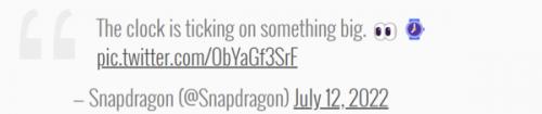 高通在推特上说:“时间紧迫,一件大事即将发生。”在这句话之后还有一双眼睛和一个手表的表情,这暗示高通最新的可穿戴SoC即将到来。