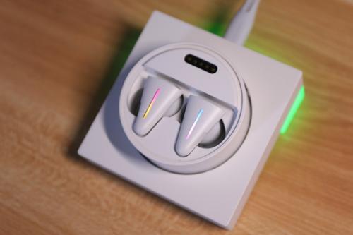 这里不得不提的一点是,作为一款更倾向于在桌面端使用的TWS耳机产品,这两个配色显然是更符合DIY爱好者需求的百搭颜色,除了倾向于酷炫灯效的玩家以外,纯白配色也是很多玩家追求的搭配。CYBERBLADE这两个配色给了玩家更自由的选择空间。