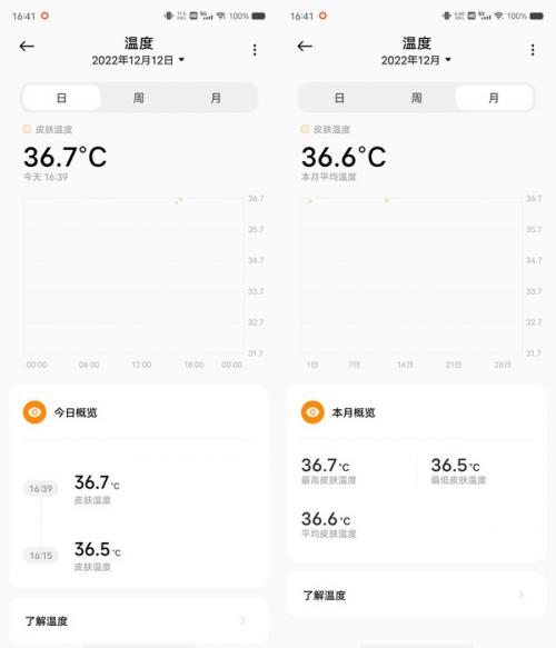 至于温度测量,对于当下的情况而言也是一个相当实用的功能,首先它能够提供单次温度检测,来发现异常情况。另外针对于喜好运动的人群,尤其是一些进阶人群,也会在运动时记录自身的体温数据,整个测温速度还是很快的,不会给用户增加负担。