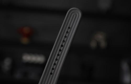 在表带部分,小米手表S2提供了硅胶和真皮表带两种材质选择,这一点和上代产品保持一致。硅胶表带内侧增加了排汗槽的设计,经过特殊处理的表带,让触感更加顺滑的同时也具有更好的抗汗能力;真皮表带则采用手工打造,缝线也由手工完成,表带的纹理随机的,保证了质感表现。此外,用户也可以按照自身需求选择钉扣表带,撞色的设计更加潮流与时尚,佩戴起来也更加方便。