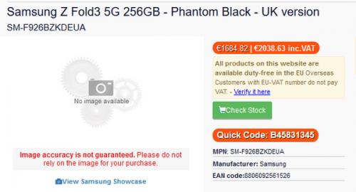三星Galaxy Z Fold3的英国版售价