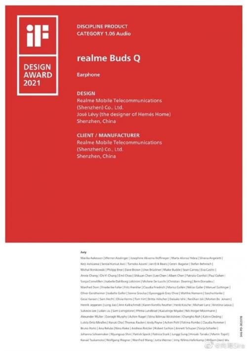 在各种电子数码产品越来越同质化的现在,相信不少人在选择购买电子数码产品时除了关心配置外,还会对产品的外观颜值有所考量。近日,realme的工业设计总监向海称,realme今年拿了三个IF设计奖,其中就包括realme Buds Q。