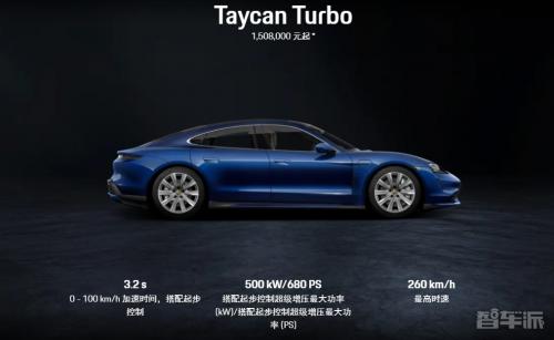 作为参考,Taycan 4S在美国的起价为103800美元(约合人民币66.08万元),具有227英里(365公里)的EPA预估续航里程,从0加速到96公里/小时只需3.8秒,这要归功于可产生最大加速度的522马力和390kW功率。相比之下,Tyacan Turbo起售价为150900美元(约合人民币96.07万元),提供212英里(约341公里)的EPA续航里程,百公里加速度只需要3秒,拥有670马力的500千瓦功率。