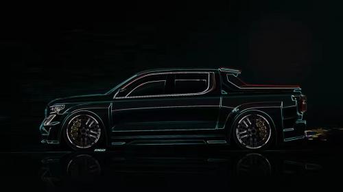 在长城公布的视频和图片中可以发现,该车整体造型上和普通的皮卡有着很大的不同。在前脸上,该车没有采用普通皮卡上大面积进气格栅,而是对格栅进行了扁平化的设计,搭配上四周棱角分明的折线立体造型,非常具有运动感。从侧面看,该车没有采用偏向越野的AT轮胎,反而是采用了大尺寸的运动扁胎,结合更加运动风的多条幅轮毂,透露出浓浓的赛车风。该车尾部采用了双边四出的排气管,底部中间采用了大面积的扩散器,上方则是大大的长城炮logo,视觉上非常具有冲击力。