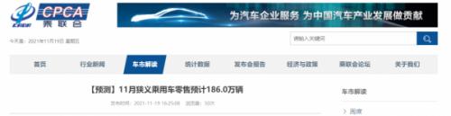 随着我国经济的发展,我国汽车总体保有量约为2.7亿辆,其中13个城市的汽车保有量在300万辆以上,但近几年由于全球缺芯影响,汽车的产量明显下降,销量也随之下降。10月芯片供给虽然有所改善,但相对于市场需求仍有较大缺口,终端市场处于结构性缺货状态。11月19日,乘联会发布11月狭义乘用车零售预测,销量预计186.0万辆,同比下降10.6%。