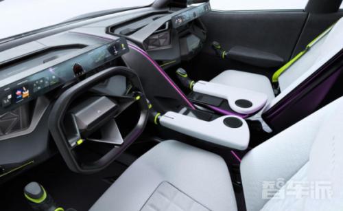 内饰方面,Hologrator概念车在主副驾驶席前方都设置有显示屏,搭配荧光色点缀,让人感受到了科技的跃动。作为全球首台使用全息增强现实玻璃的汽车,该车可以通过显示广告来为出行服务创收。此外,三个乘客还可通过AR技术来体验不同的游戏内容。