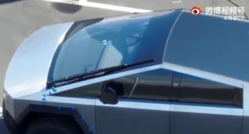 从视频截图中可以看到,这辆新车外形与此前的版本类似,但侧面新增了两个实体反光镜。此前的原型车采用摄像头作为后视镜,但是这不符合美国法律的要求。马斯克此前表示,Cybertruck依旧会保留摄像头后视镜系统,实体后视镜可以拆卸。不过,赛道上发现的Cybertruck最显著的特征是巨大的挡风玻璃雨刮器,它垂直向上运行在车辆驾驶员侧。
